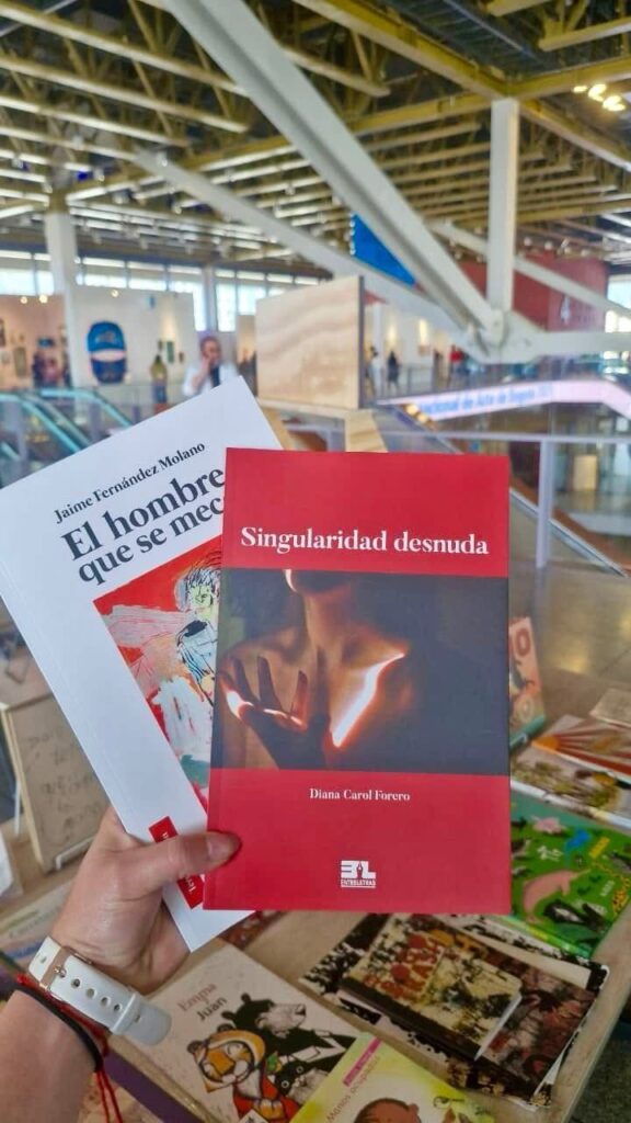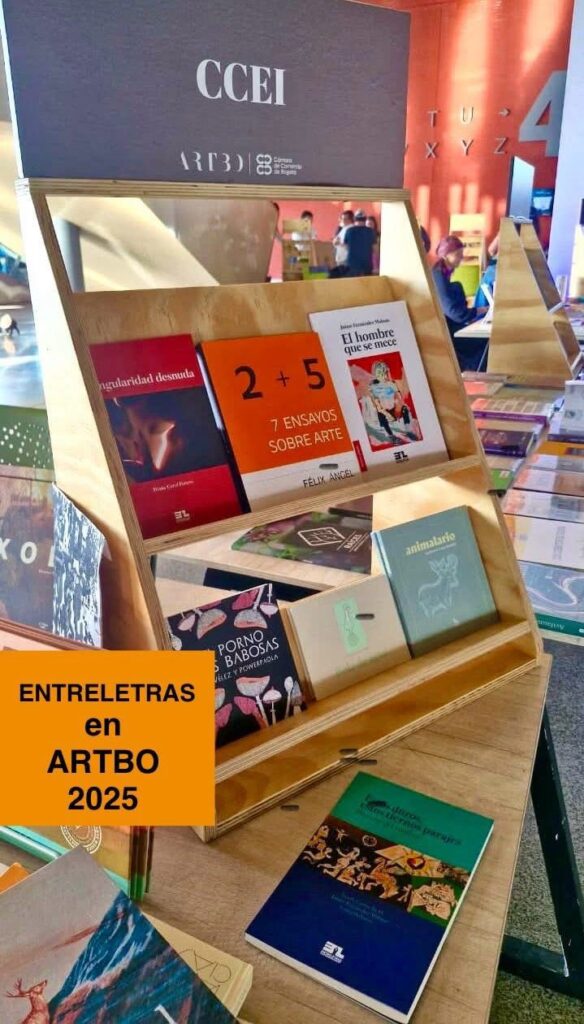 La participación de Entreletras se da gracias al proceso de selección curatorial liderado por la Cámara Colombiana de la Edición Independiente, en el que nuestra editorial resultó elegida para formar parte de esta muestra bibliográfica nacional, con cinco títulos de su catálogo: El hombre que se mece (historias mínimas) de Jaime Fernández Molano, Calles de Hielo (novela) de Nayib Camacho Oviedo, Singularidad desnuda (poesía) de Diana Carol Forero, El retorno (teatro) de Angela Triana Gallego, y Estos duros, estos tiernos parajes – historias del conflicto, seleccion de textos de 23 autores del sello Entreletras.